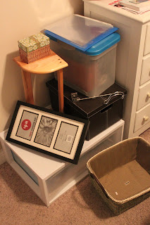 So far, I have only gathered items that I hope to sell, photographed them, and posted them online. Thankfully, I have sold a few things and have a plan for moving the boxes out of the room {with the help of the hubs}.